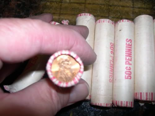 These are the first two rolls of pennies that I have found that are like that. Haven't opened them yet but I did take a picture of the two rolls. Hopefully my eyes will be better tomorrow and I can open them and see what treasure await me!!!