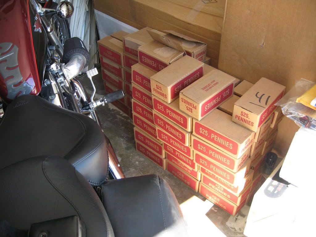 Pretty busy at work for me this week too, so I didn't get much sorting done. Like NotABigDeal I did dump off a lot of zinc on Wednesday. Then I found out the bank manager at my dump bank was on vacation this week so I managed to sneak in an extra 12 bags ($600) of zinc yesterday <G> If I try to do much more than that in one load it gets a little tough getting it up the incline ramp at my dump bank. I will probably still get busted though.. the armored truck left before I got my zinc dumped at the bank so the manager will probably notice all those bags of pennies stacked up in the vault and won't even have to look to guess where they came from.. LOL.