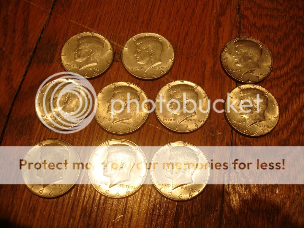 Stopped at a few banks on the way home today. $18 in teller halves yielded 5 68s, 7 67s, and 2 66ers All but one of the 40%ers came from a bank that sold me $9.5 in halves. As the teller was getting me the halves she said "there is no silver, I already checked for those. Too bad you didn't come in a couple of days ago. We had $60 of these but a lady came in and said said she wanted some halves to give to her grandkids and bought $50 worth." More than half of the banks I stop at tell me that someone else just bought all of our halves yesterday, last week, or 10 minutes ago.
