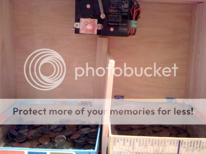 | I got a piece of corner bead at Home Depot. Its a metal "V" shaped long item. I screwed it above the coin slot and put a 2 liter-bottle cut in half on the other. Now, I just grab a handful, drop it in, and it goes to town. I'll post photos when I can. |