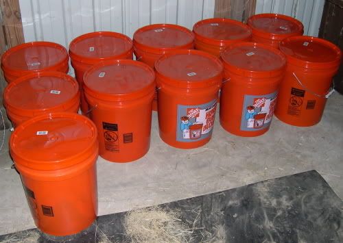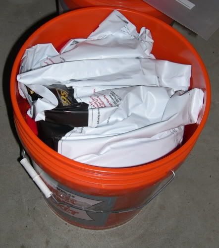 My storage scheme - 6- 20 lb. UPS bags to a bucket: